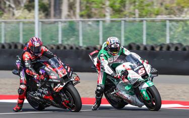 Lotta pazzesca, divertente, appassionante densa di emozione e lotta quella tra i piloti che di solito si scontrano anche in quel di Tavullia e cioè Bagnaia che se ne è andato e poi soprattutto il duello tra Morbidelli e Bezzecchi. Il Bez è partito male per via dell’abbassatore che non ha funzionato, poi con la sua ‘23 ha dovuto utilizzare la gomma anteriore soft per compensare il grip posteriore che spinge sul davanti. Franco con la ’24 ha invece una moto che accelera un po’ meno in uscita, ma entra meglio. Comunque bellissimo duello 8.