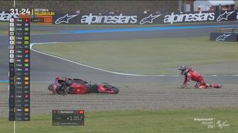 Caduta per Bastianini nelle pre-qualifiche di Motegi. A metà sessione il pilota Ducati ha perso l'anteriore alla penultima curva ed è finito nella ghiaia ad alta velocità, fortunatamente senza riportare conseguenze fisiche. Bestia, che è tornato ai box correndo, ha poi cambiato la tuta ed è tornato in pista riuscendo a centrare l'accesso al Q2 di sabato con il quinto tempo