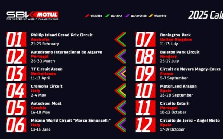 Due round in Italia sui 12 complessivi. Confermata Cremona, dopo il grande debutto 2024 con una cornice di pubblico spettacolare. Misano a giugno appuntamento storico del mondiale SBK