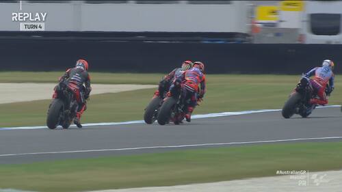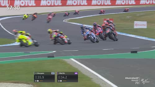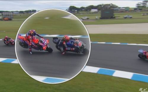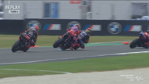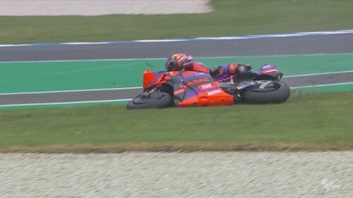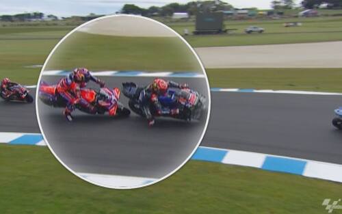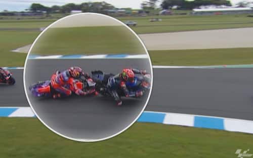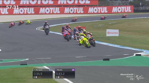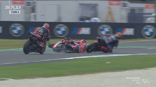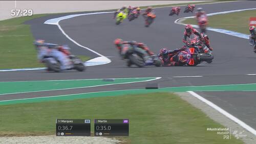 - Non sono iniziate nel miglior modo possibile le pre-qualifiche di Phillip Island per Martin. Lo spagnolo è arrivato lungo pochi minuti dopo l'inizio del turno e, quando ha preso il freno in mano per evitare Quartararo, il posteriore della sua GP24 si è sollevato di colpo con l'anteriore che si è chiuso. Contatto evitato per pochissimi centimetri, con Martin che dopo esser tornato ai box ha potuto proseguire la sessione (chiusa con il 4° tempo)
