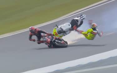 Maverick Vinales e Marco Bezzecchi sono stati protagonisti di un brutto incidente a due giri dal termine della Sprint Race del GP Australia, mentre erano in lotta per il quinto posto. Il pilota Ducati non è riuscito a fermare la sua moto alla staccata della curva 1, al termine del rettilineo, probabilmente a causa del forte vento. Il numero 72 è così finito addosso allo spagnolo dell’Aprilia, causando la caduta di entrambi. Nessuno dei due piloti fortunatamente ha riportato gravi conseguenze.