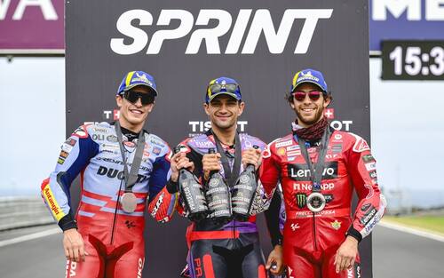 - Dopo la pole, Jorge Martin ha fatto sua anche la Sprint Race di sabato a Phillip Island davanti a Marc Marquez ed Enea Bastianini. Quarto posto per Bagnaia, che scatterà 5° domenica nella gara lunga in Australia.