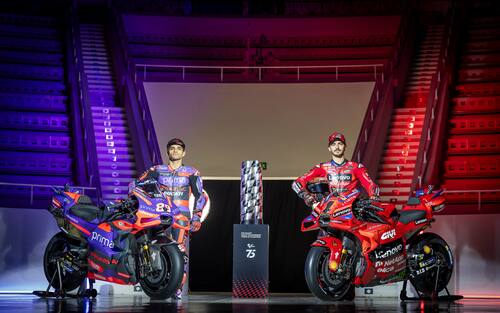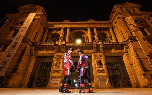 - In foto, Jorge Martin e Pecco Bagnaia durante lo shooting di mercoledì 13 novembre all'interno del Museo Nazionale dell'Arte della Catalunya (MNAC)