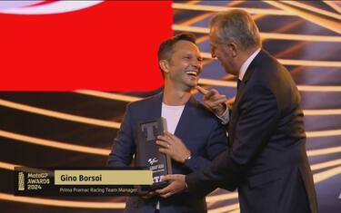 Il team Pramac ha fatto la storia conquistando la classifica piloti con Jorge Martin e stravincendo anche quella riservata ai team indipendenti. Qui Gino Borsoi ritira il trofeo. Dal 2025 la squadra di Campinoti passerà da Ducati a Yamaha