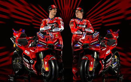 - Nella suggestiva cornice di Madonna di Campiglio il team Ducati Lenovo ha svelato la livrea 2025 e la squadra dei sogni composta da Bagnaia e Marquez