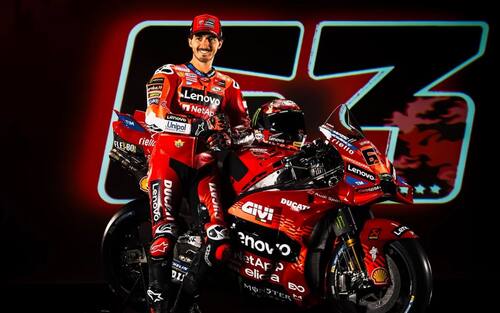 - Sul cupolino di Pecco Bagnaia torna il numero 63 dopo i due anni da campione del mondo con l'1. Inglobate nel 3 si notano le tre stelle dei titoli vinti nel Motomondiale