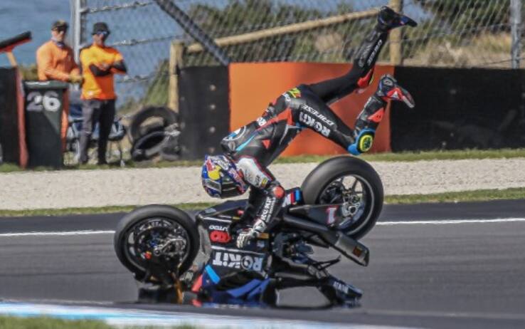 SBK, Bulega il più veloce nei test di Phillip Island. Spettacolare high-side di Toprak