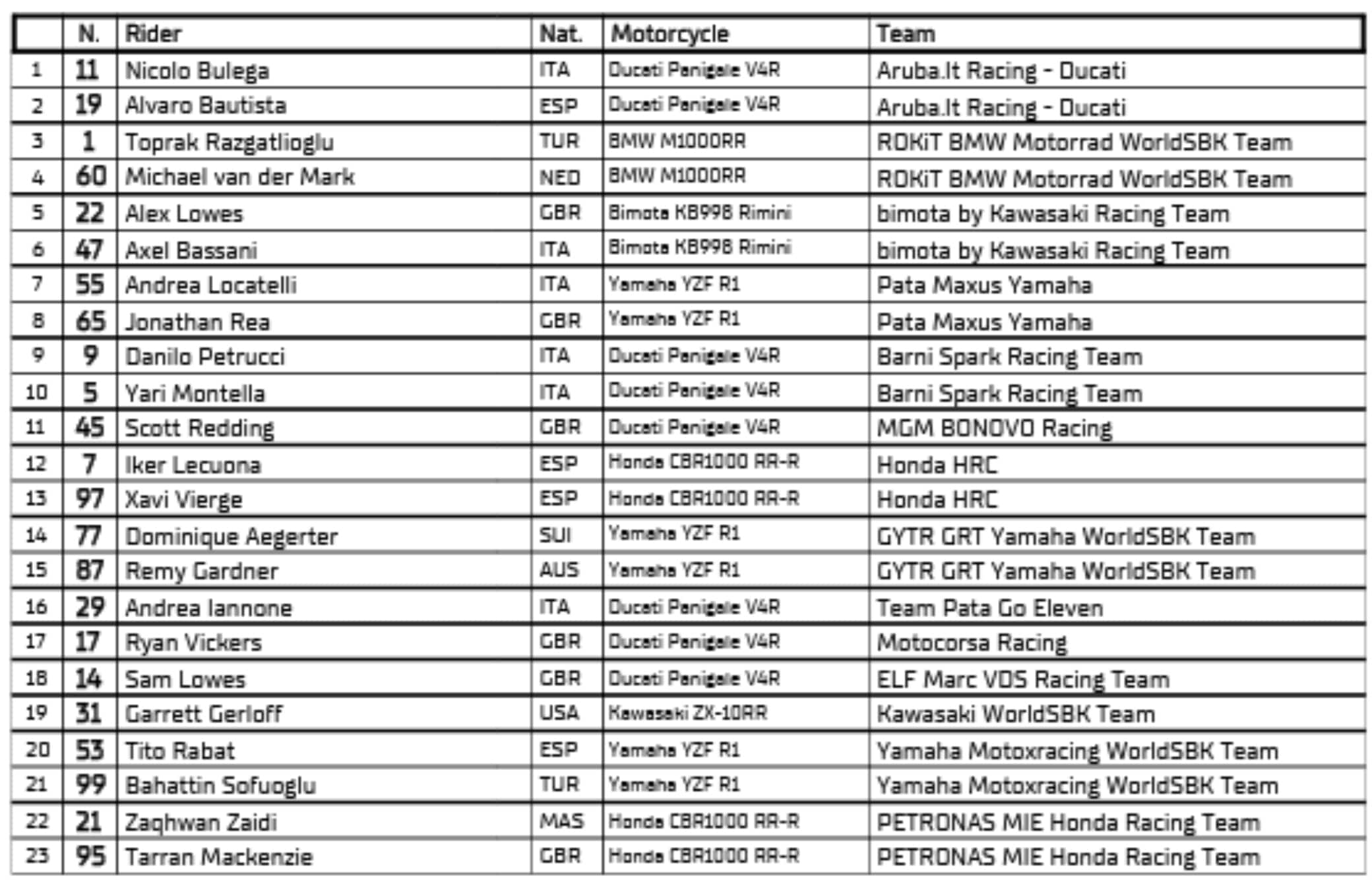Oltre in quarto della griglia del Mondiale SBK 2025 e’ italiano: Bulega, Iannone, Locatelli, Petrucci, Bassani e Montella senza dimenticare che un terzo dello schieramento complessivo sarà in sella a Ducati. E’ 'grand’Italia' insomma nel WSBK.