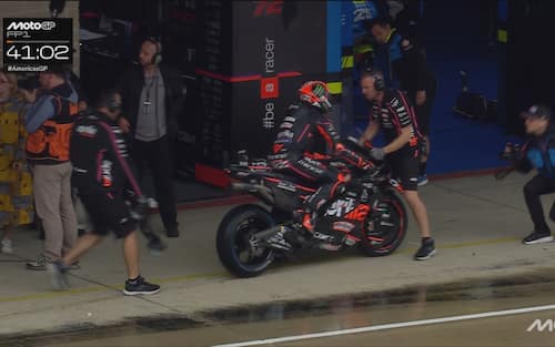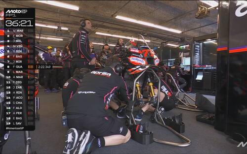 - Rientrato ai box, in casa Aprilia si cerca di risolvere il problema accusato dal pilota romagnolo. Intanto sono già passati quasi 10 minuti dall'inizio delle FP1 al Cota...
