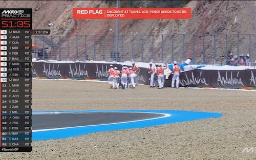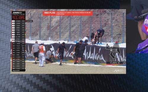 Pre-qualifiche da montagne russe per Alex Marquez: il pilota del team Gresini è scivolato procurandosi contusioni e abrasioni al braccio destro ("Nulla di preoccupante", ha poi rassicurato a Sky). La caduta ha provocato anche una bandiera rossa, per via del contatto tra la Ducati dello spagnolo e un air fence (che ha richiesto l'intervento dei marshall). Rientrato ai box, Marquez è poi tornato in pista nel finale delle Pre-qualifiche, chiuse al 1° posto con il nuovo record della pista