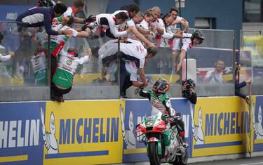 - Intelligente e con una grande sicurezza in sé stesso e nella sua scelta di restare con le gomme da bagnato. Oltre ad un ritmo pazzesco, velocissimo sull’acqua, Johann Zarco porta a casa la sua seconda vittoria in MotoGP e riporta, 42 GP dopo, la Honda al successo e mette fine, dopo 22 gare, alla sequenza di vittorie Ducati che così resta alla pari con la Honda senza riuscire a battere questo record. Insomma una grande giornata per la Francia motociclistica che ha stabilito il record di oltre 311.000 spettatori presenti nei 3 giorni e ha potuto festeggiare nonostante la caduta di Fabio Quartararo (4). Per il vecchio Zarco 10 e lode, se lo merita per tutto: gestione, guida, coraggio e anche fortuna alla prima curva quando è andato dritto evitando i piloti caduti prima di iniziare a martellare nonostante sia stato toccato tanto da togliergli il braccio sinistro dal manubrio. Era destino, un destino sorridente, 100° vittoria francese nella storia, bella e meritata. E porta il team di Lucio Cecchinello a vincere con la Honda.