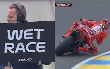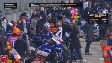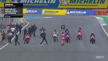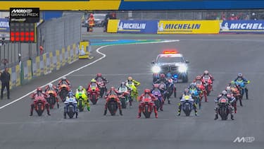 - Al termine del "sighting lap" è di nuovo caos: 13 piloti, dopo aver completato un giro con le rain, decidono di tornare ai box per prendere nuovamente la moto con pneumatici da asciutto.