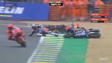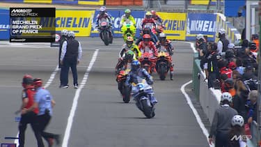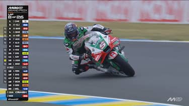 - A Le Mans torna a piovere e i piloti con le slick iniziano a far fatica. Ad avere la peggio sono Quartararo e Binder, scivolati mentre si trovavano rispettivamente al 2° e 3° posto.