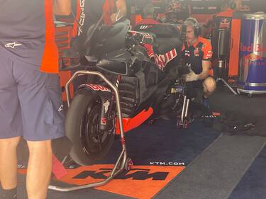 - In casa Ktm ci si è concentrati sull'aerodinamica, con il team austriaco che ha provato una nuova carena con tanti dettagli molto interessanti. In foto la moto di Enea Bastianini.