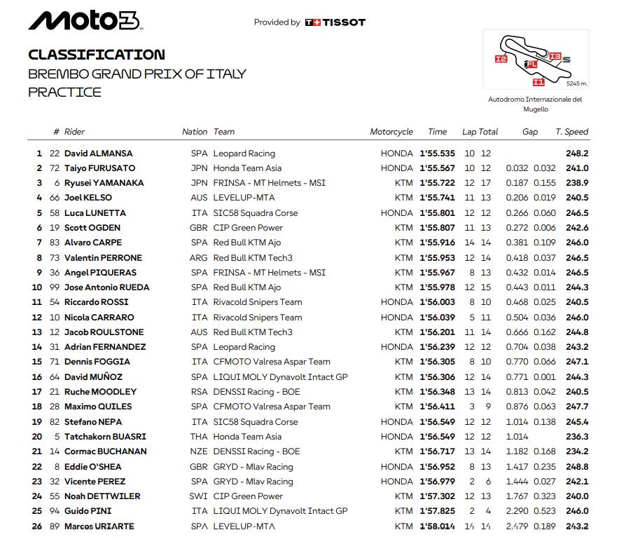 Moto3, GP Italia al Mugello: Almansa 1° nelle Pre-qualifiche. Risultati e tempi