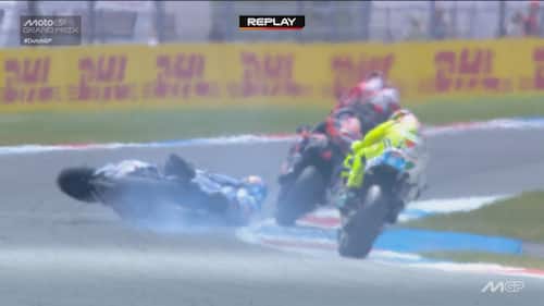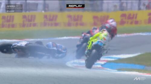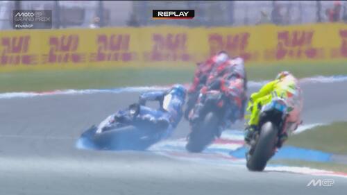 - Alex Marquez è stato protagonista di una caduta nel Gp d'Olanda. Durante il 6° giro il pilota del team Gresini, che era in 5^ posizione, si è toccato con Acosta ed è finito a terra. Lo spagnolo è apparso subito dolorante a una mano, è andato al centro medico e gli esami a cui si è sottoposto hanno evidenziato una frattura scomposta del secondo metacarpo della mano sinistra. E' stato già operato