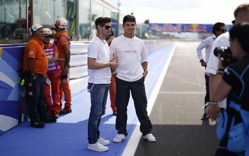 - Il pilota della McLaren in visita al box Ducati di Pecco Bagnaia