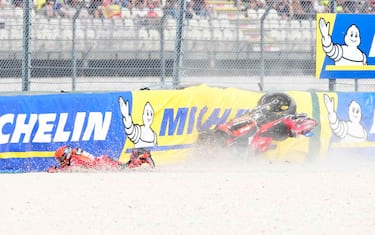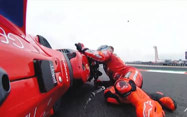 - La pioggia bagna il circuito di Austin e getta nell'incertezza il GP. La maggior parte dei piloti opta per i pneumatici da bagnato, ma a 3 minuti dal giro di ricognizione Marc spariglia le carte: scatto improvviso per andare a prendere la moto con assetto da asciutto, si scatena un 'fuggi fuggi' generale verso il box anche degli altri piloti (QUI il video). La direzione gara non può far altro che esporre bandiera rossa e dare una nuova procedura di partenza. Il GP parte con 20 minuti di ritardo e Marc fa subito il vuoto. Nel corso del 9° giro, però, lo spagnolo scivola in curva 4 su un cordolo ancora umido. Prova a ripartire, ma la sua moto ha troppi danni ed è costretto a ritirarsi. "Ho tagliato troppo il cordolo, errore mio". Vince Bagnaia davanti ad Alex, che lo scavalca in testa al Mondiale.
