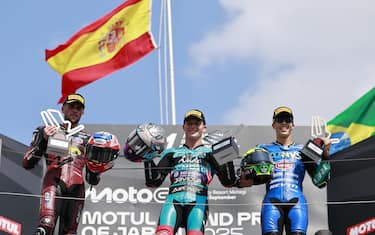 - E due! L’esordiente Daniel Holgado (10), una delle tante belle scoperte dell’organizzazione di Aspar Martinez vince da dominatore il suo secondo GP, andandosene e gestendo un vantaggio arrivato ad oltre 4 secondi, poi gestendo su un rimontante e ottimo Dixon, un inglese che è un peccato perdere (andrà in Superbike) perché bravo e simpatico, 9. Terzo dopo una lotta finale tesissima con David Alonso (7), Diogo Moreira (8) che mantiene così possibilità di vincere il titolo dato che ora è a 34 punti da Gonzalez (8) che è finito alle sue spalle dopo un inizio che lo ha visto toccarsi con Vietti (NG) che è caduto, mentre a lui è stato comminato un long lap come penalità forse un po’ troppo severa. Sesto un buon Arbolino dolorante all’avambraccio operato, 7. Tredicesimo un Canet che ultimamente non sembra più lui, 5.