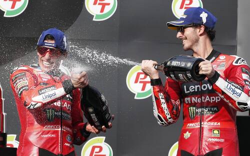 - Il GP d'Indonesia ha regalato il terzo verdetto della stagione dopo il campionato costruttori vinto da Ducati e il trionfo tra i piloti di Marc Marquez: il team ufficiale di Borgo Panigale - malgrado la Sprint complicata del campione iridato (6°) e del compagno Pecco Bagnaia (14°) - si è aggiudicato anche il titolo mondiale a squadre