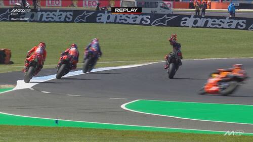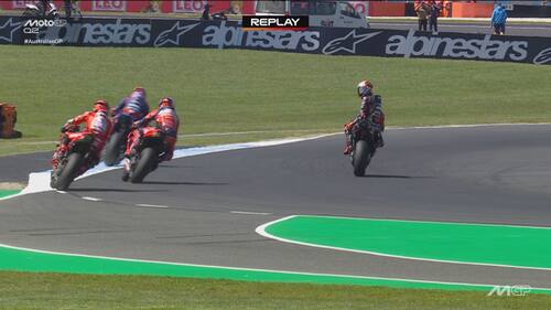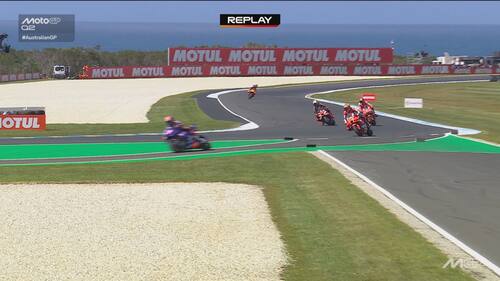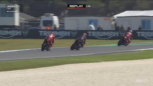 Scintille tra amici nel corso delle qualifiche di Phillip Island. Bagnaia ha ostacolato Bezzecchi nel corso di un giro lanciato ed è stato penalizzato con 3 posizioni in griglia da scontare nella gara di domenica: Pecco, che ha chiuso penultimo l'ennesima Sprint da incubo della sua stagione, partirà 14° invece che 11°. Di seguito la fotosequenza dell'episodio nel Q2