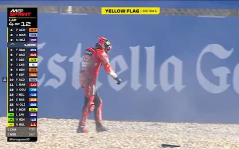 Si è chiusa con una caduta la Sprint Race di Portimao di Nicolò Bulega. Il pilota Ducati ha perso il controllo della sua moto ed è scivolato al quarto giro della gara veloce, quando si trovava in 17^ posizione. "Ho frenato in stile Superbike", ha detto l'italiano nell'intervista a Sky Sport. Di seguito la foto-sequenza e il video della scivolata
