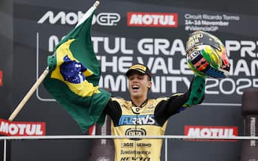 - Nuovo vincitore anche in Moto2 col primo successo nella categoria di Izan Guevara, che ha reso impossibile qualsiasi tentativo di un ottimo Holgado (9) di batterlo anche se ci ha provato per tutta la gara. Ma soprattutto primo Campione del Mondo nel motociclismo per il Brasile con Diogo Moreira che con una gara molto prudente (11°) visto che gli sarebbe bastato, nel caso avesse vinto Manuel Gonzalez, finire 14°. Ha fatto bene a stare lontanissimo da qualsiasi rischio che era del tutto inutile prendersi e vince un titolo in rimonta dimostrando una crescita che lo porterà l'anno prossimo a correre in MotoGP con la Honda al posto di Chantra. Bravissimo anche al team Italtrans che non ha mollato, anzi ci ha sempre creduto. 10 e lode per la stagione, la gara di oggi per Diogo era soltanto un punto a capo da mettere, una pagina da girare, un obiettivo da portare a casa e c'è riuscito. Complimenti, parabens, Diogo! Per Manuel Gonzalez la gara di oggi sembrava un riassunto della sua stagione, iniziata alla grande e poi poco alla volta diventata una lenta e progressiva resa: stavolta si è dovuto fermare per sostituire la gomma posteriore finita, ma era comunque invischiato in una non determinante quinta posizione. Sfortuna, ma il titolo era già perso. 5. Sul podio finiscono anche l'ottimo Holgado e Ivan Ortola a completare l'ennesimo podio tutto spagnolo. Gli italiani in Moto2 sono Vietti e Arbolino che hanno chiuso una stagione con un risultato non eclatante, decimo e undicesimo. Vietti ha almeno vinto una gara, Arbolino un solo podio. Serve qualcosa di più per interrompere il dominio spagnolo che resiste nonostante il campione sia brasiliano.