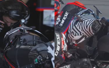 • Aprilia ha sfoggiato una nuova carena con una livrea "camouflage". Nella parte anteriore si è visto un convogliatore molto grande, utile a tenere il punto di corda.