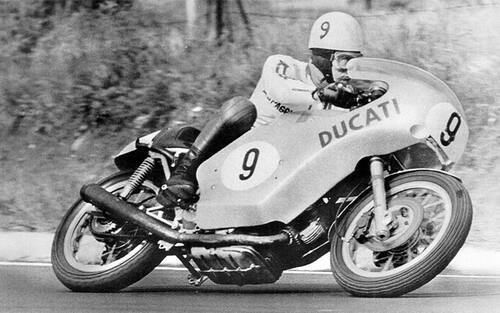 - La storia della Ducati nella top class del Motomondiale nasce 50 anni fa, quando partecipa 2 volte al GP delle Nazioni, la tappa italiana del calendario di allora: nel 1971, a Monza, con Bruno Spaggiari (nella foto), Phil Read (4° all'arrivo) e Giordano Mongardi (9°). Nel 1972, a Imola, Spaggiari (3°) conquista il 1° podio del team, seguito dalle altre 'Rosse' di Paul Smart (4°), Sergio Baroncini (7°) e Mongardi (11°). Senza fortuna la gara di Mario Lega a Brno. Dopo questa breve parentesi, il ritorno in MotoGP.