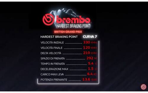 - Complice la maggiore velocità massima, la Stowe (curva 7), è - sempre secondo i dati Brembo - la più impegnativa.