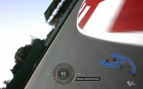 - Ma è specialmente Misano ' un punto focale della pista: perché si arriva a curvare a sinistra dopo una sequenza di curve tutte sulla destra. E in caso di bassa temperatura dell'ambiente il lato sinistro della gomma sarà, inevitabilmente, freddo. E il rischio è quello di 'perdere' l'anteriore. Insomma: ci vorrà molta attenzione!