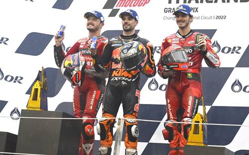 - Nel 2022, Oliveira (KTM) vinse sul bagnato un pazzo GP di Thailandia, iniziato con un'ora di ritardo per l'acquazzone abbattutosi sul circuito di Buriram. Secondo posto per Miller, Bagnaia chiuse 3° guadagnando altri 16 punti su Quartararo (solo 17° al traguardo), portandosi soltanto a due punti di distacco dal francese, allora leader del Mondiale.
