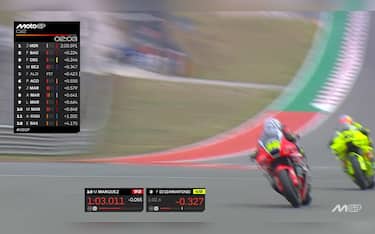 "Una qualifica tosta, ma positiva. Un passo avanti rispetto a venerdì", il commento di Marco Bezzecchi, che si è assicurato la prima fila col secondo miglior tempo, dietro a Fabio Di Giannantonio, che ha replicato il risultato di una settimana prima in Brasile, a conferma di uno stato di forma eccezionale in sella alla Ducati ufficiale della VR46. Due italiani davanti a tutti come a Goiania, anche se lo Steward Panel ha retrocesso il pilota dell’Aprilia di 2 posizioni nella gara lunga di domenica per aver rallentato Marc Marquez, 'graziato' invece per l'episodio con Bastianini. Gran lavoro per la “Var” del Motomondiale, che ha rivisto anche il giro di Bagnaia (senza infliggere penalità a Ogura), uscito da solo dopo il cambio gomma per poi ritrovarsi il resto del gruppo davanti, ancora in fase di lancio. L’ex campione del mondo ha poi segnato il quarto tempo, comunque un passo avanti rispetto alle prime due gare della stagione.