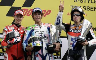OLANDA 2007 - Con una Yamaha in versione "special", Rossi rimonta dall'undicesima posizione di partenza sino alla prima, conquistando uno dei suoi Gp preferiti (Assen). Il Mondiale però, quell'anno, sarà di Casey Stoner e della Ducati -