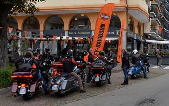 Harley pronte alla partenza, nella sede milanese della casa motociclistica statunitense: il viaggio è partito proprio da qui (Foto Stefano Gadda) -