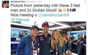 Nell'ultimo Gp di Monza è stato ospite nel box della Red Bull, che è anche il suo sponsor. Scrive Jill che Daniel ha il sangue siculo come Tony (foto da Twitter)-