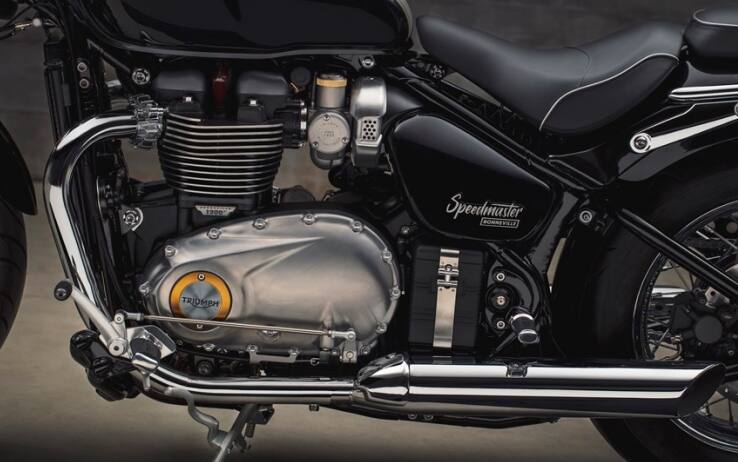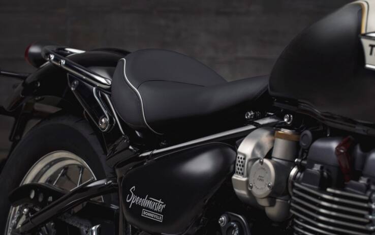 Particolarmente interessante la possibilità di rimuovere la sella passeggero e i relativi maniglioni, ottenendo una versione monoposto (con una particolare finitura del parafango posteriore realizzata da un apposito kit). Come per tutte le Classic, infatti, il catalogo di accessori è molto ampio con oltre 130 possibilità; per semplificare la vita agli appassionati, però, Triumph ha allestito due kit che danno vita a personalità differenti per la Speedmaster.