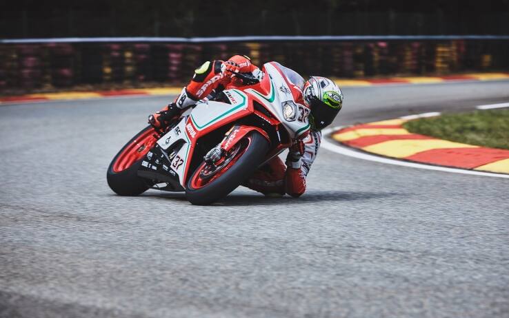 Anche l'impianto frenante è al top: Brembo da 320 flottante con pinze radiali GP a quattro pistoncini da 30 mm. Il disco posteriore è da 210 mm e l'impianto Abs è un Bosch 9 Plus Race Mode con dispositivo anti sollevamento posteriore.