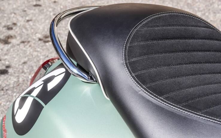 La sella, in doppio rivestimento con cadenino, impunture elettrosaldate e cuciture bianche a contrasto, ha un look monoposto ma è in realtà omologata per due.