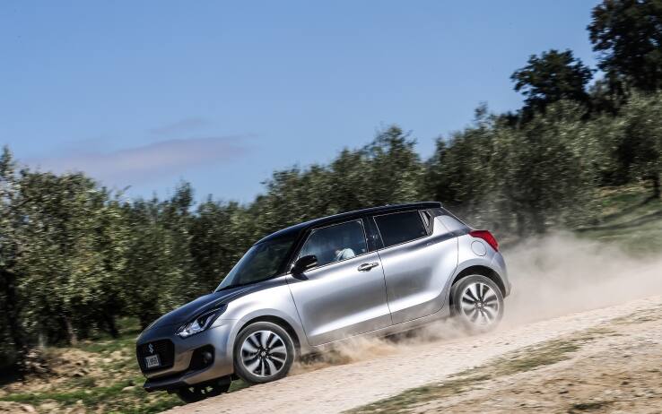 Brilla invece quando si va a cercare l’avventura. Ovvio che non si tratta di un’auto al pari delle parenti Jimny e Vitara, ma nello smosso si trova a suo agio anche tra sassi di notevoli dimensioni, basta tenere sotto controllo traiettoria, pedale del gas e la Swift sguscia via tra salite e discese. Ci sarebbe piaciuto molto provarla su neve, perché crediamo che abbia da dire la sua anche su un fondo insidioso come quello, dato l’ottimo funzionamento automatico del sistema AWD e la sezione stretta del battistrada.