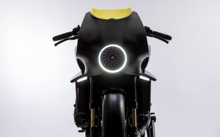 Nella parte frontale è stata posta una turbina eolica (mossa dal flusso d’aria che investe il cupolino) utile per alimentare il touch-screen (che funge da navigatore e connettore di dispositivi digitali) integrato sul serbatoio.