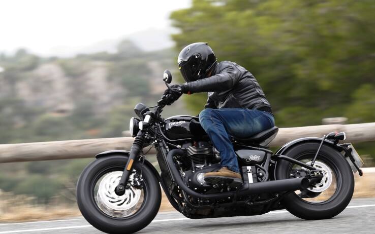 Le prime differenze si hanno nello scarico, che ora sfoggia una nuova unità a doppia camera con silenziatori a cerbottana e taglio a fetta di salame. Il catalizzatore è nascosto fra i collettori. L’acceleratore è ride-by-wire con due mappature (Road e Rain) e il controllo di trazione è disinseribile. Arriva poi il cruise control, azionabile con un solo pulsante sul blocchetto elettrico sinistro. Abbiamo una nuova forcella Showa a cartuccia con steli da ben 47 mm (41 sulla Bobber), con 90 mm d’escursione, che accoglie un inedito pneumatico 130/90 anteriore da 16 pollici (19 sulla standard). Invariata la sospensione posteriore, con mono-ammortizzatore progressivo e forcellone a gabbia oscillante, che simula la tipica linea hardtail.