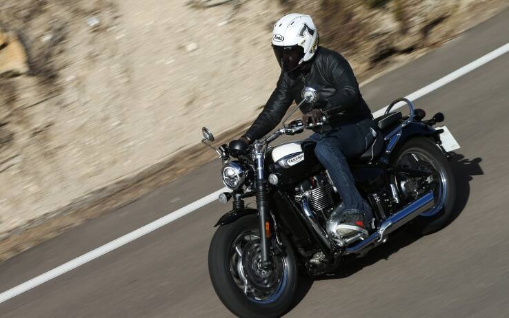 La Speedmaster arriverà nelle colorazioni Jet Black, Cranberry Red, Fusion White/Phantom Black con doppia finitura dipinta a mano con prezzi a partire da 14.350 euro. Triumph realizzerà anche due versioni speciali: la Maverick (con scarichi neri e manubrio dritto) e Highway (con parabrezza, protezioni e borse). La base motoristica è la stessa: il bicilindrico da 1200 cc High Torque con fasatura a 270° in configurazione Bobber, capace quindi di 106 Nm a 4.000 giri e 77 cv a 6.100 giri. La ciclistica ricalca in gran parte quella della Bobber standard, con cerchi da 16”, dotata però del nuovo impianto frenante Brembo con doppio disco anteriore da 310 mm.