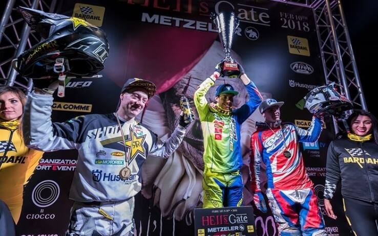 La partenza è da pelle d’oca. Tensione, spettacolo ed entusiasmo si fondono e diventano delirio. Dieci finalisti, uno contro l’altro per il Titolo di Hell’s Gate Metzeler del 15° Anniversario. La diretta dello scontro è lo show dello Sport allo stato dell’arte. Jarvis è stanco e si sgancia progressivamente dal confronto, Teasdale perde terreno e, quando la catena esce dalla corona, si stacca dal convoglio dei fuggitivi. Gli italiani puntano su Bosi, ma seguono il duello avvincente tra Mario Roman, una autentica furia, e Wade Young, ancora al comando ma condannato. Al secondo giro la sua moto si ferma e il sudafricano è condannato al ritiro.