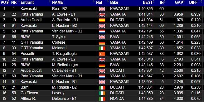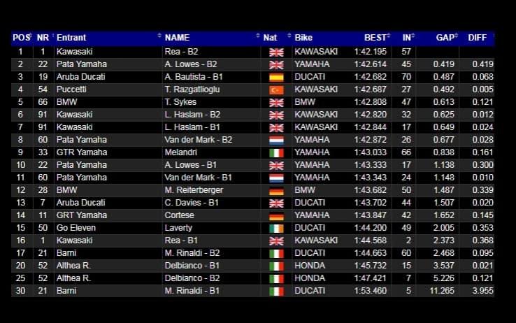 Continuano i lavori di sviluppo sulla nuova Panigale V4 R, con Bautista – uno dei rookie della Superbike - che chiude nella top 3 pur non avendo mai girato a Portimao. Dall’altro lato del box, Davies si è trovato in grossa difficoltà per i problemi alla schiena
