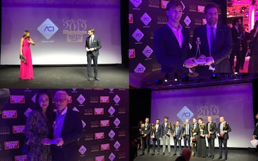 Sul palco anche Carlo Vanzini, commentatore della F1 per Sky, premiato con un casco d'oro speciale