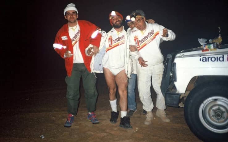 Una volta arrivati, spesso anche con strizze non indifferenti, si scendeva, si montava il campo, ci si dava una parvenza di umanità (eravamo tutti color marroncino sabbia) si chiacchierava su cosa chiedere ai piloti e chi avrebbe dovuto farlo. Io ero specialista nelle interviste all’arrivo: correvo a fianco della macchina o della moto del vincitore in modo da essere sempre il primo ad avere la dichiazione (Orioli, Lalay, Peteransel, De Petri Vatanen…). Mi dava una mano il tecnico audio e il cameraman, tanto che i giornalisti de La Cinq ci chiesero se per una volta potevamo lasciare che fossero loro a fare l’intervista per primi.