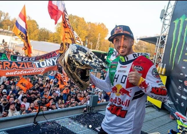 MotocrossNove volte campione del mondo, la leggenda del Motocross Tony Cairoli ha corso a Mantova la sua ultima gara della carriera: festa particolarmente emozionante tra le lacrime del suo team, la consegna del "Casco d'Oro" e l'inchino del neocampione del mondo Herlings