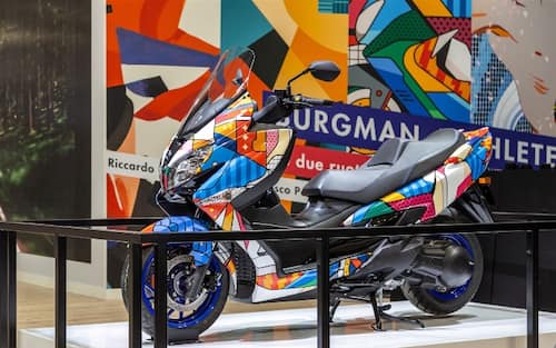 L'OPERA D'ARTE - Sono dei gioielli, dei capolavori, delle opere d'arte le moto che si possono ammirare all'Eicma. Il Burgman 400 wrappato con l’opera “Lo schermitore” dei gemelli Van Orton, illustratori italiani di fama mondiale, si addice particolarmente a questi aggettivi. Lo scooter è stato venduto all'asta per beneficienza: l'assegno del ricavato di 7.390 euro è andato a Fondazione Matalon, che utilizzerà i fondi per la promozione di progetti a sostegno di giovani artisti emergenti.