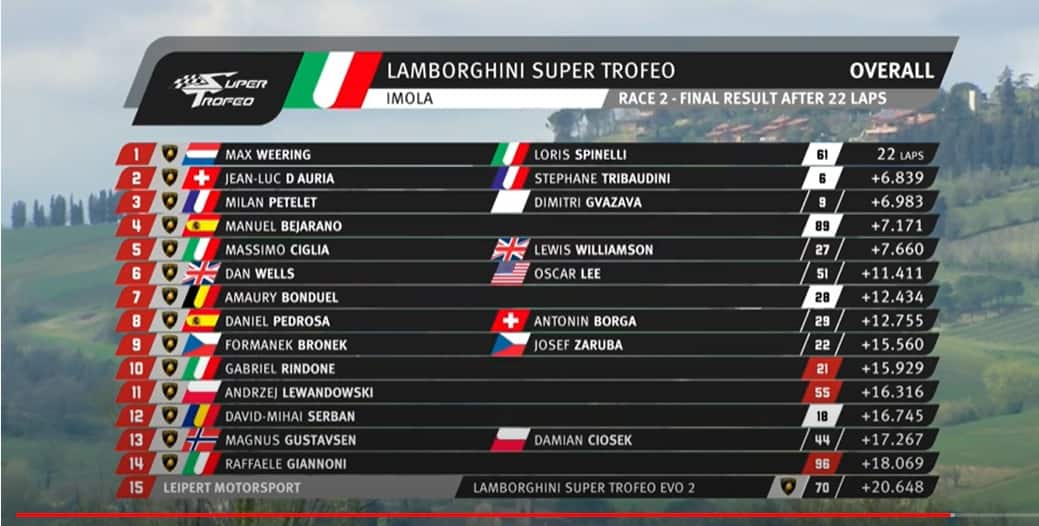 Lamborghini Super Trofeo Europa, Gara-2 a Spinelli. Pedrosa chiude ottavo. RISULTATI